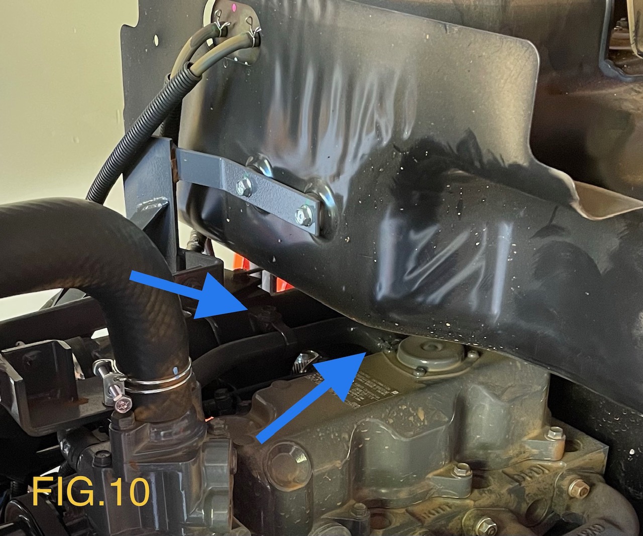 18). Attach supplied PCV hose to engine valve cover using one OEM clamp from original PCV hose