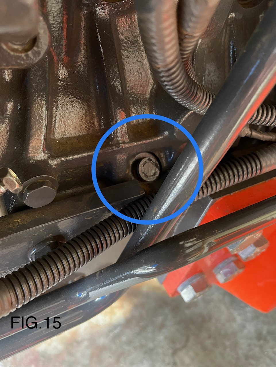 15). Remove oil plug from left side of engine block