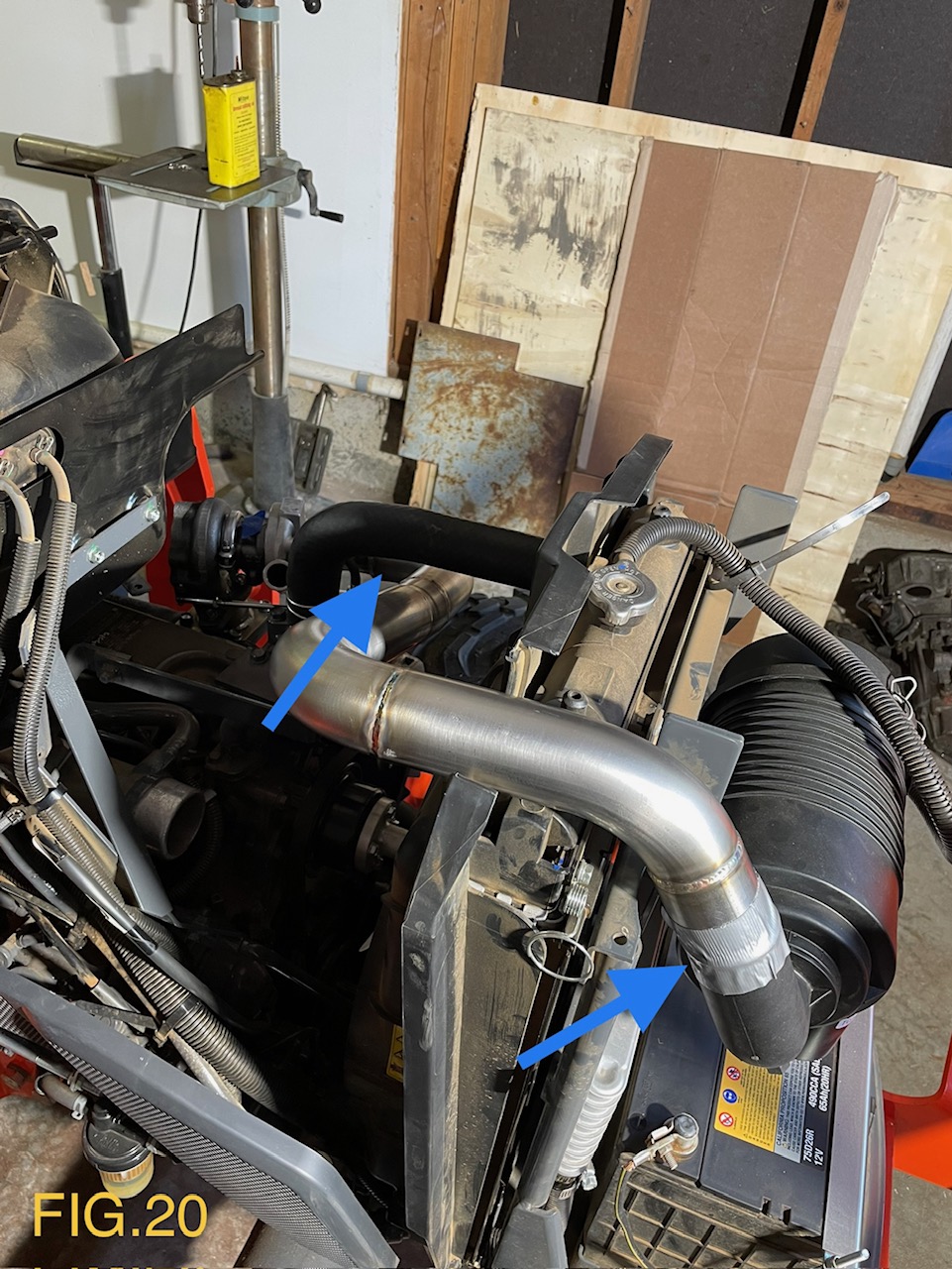 20). Connect supplied PCV hose to Turbo air cleaner Intake pipe reusing OEM hose clamp. You may need to shorten hose for proper fitment