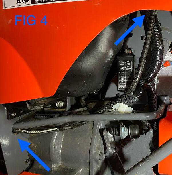 9). On L2501 tractors, using a sharp tool, make a small hole into the factory steering column boot and route the wiring up and through the hole. See Fig 5